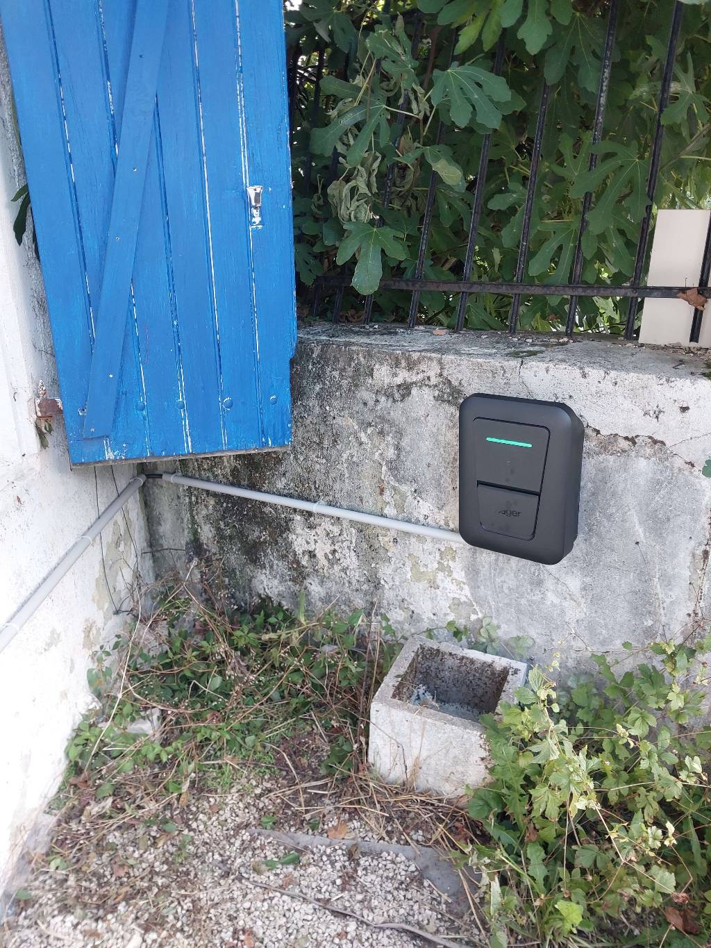 INSTALLATION D'UNE BORNE DE RECHARGE POUR VÉHICULE ÉLECTRIQUE HAGER WITTY ONE 7 KW À LONGRE, À 20 KM DE RUFFEC EN CHARENTE (16)