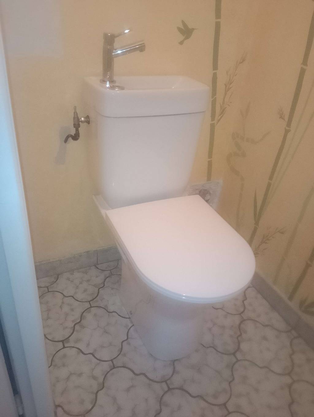 À RUFFEC en CHARENTE, nos clients cherchent à optimiser l'espace de leurs toilettes. Nous leur avons proposé la solution innovante du réservoir attenant universel avec lave-main de chez GODART.